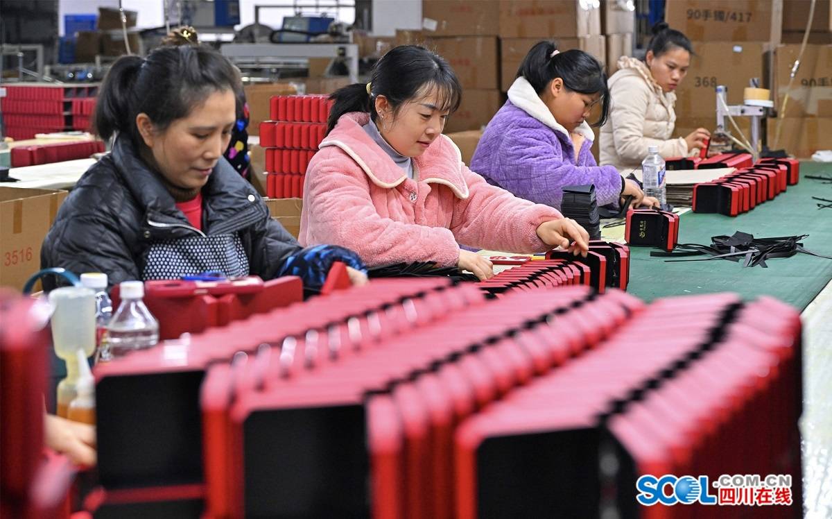 在仁壽縣經(jīng)濟(jì)開發(fā)區(qū)的成都創(chuàng)興科聯(lián)光電有限公司生產(chǎn)車間,工人正在趕制訂單產(chǎn)品。